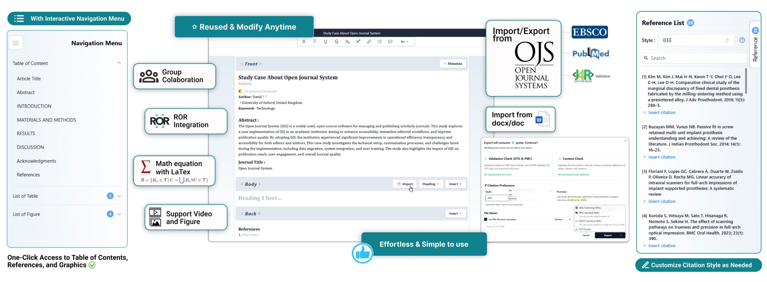 - Publish to OJS with ease as included with exclusive plugin in OJS.