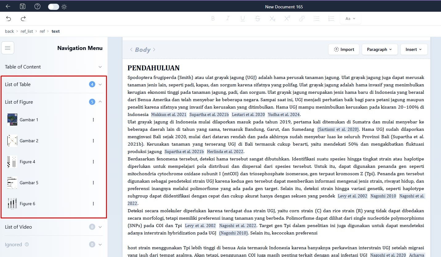 2. If your document has been successfully uploaded, you can check if there is some line that need to be corrected. You may also check the assigned table, and assigned figures in the text to make sure it is assigned to the correct figure, table, or reference.